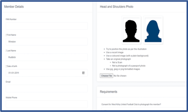 NOTE: The details included at this stage have been designated by the club – please note that ALL mandatory fields must be completed to proceed