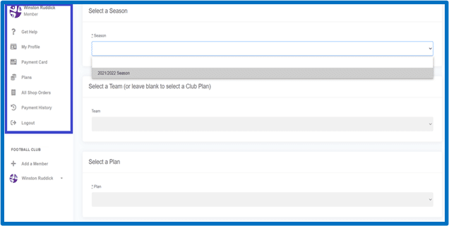 NB: Some Clubs may only have one plan shown, other clubs may have multiple plans for their club, please ensure you select the right plan/team for the member.