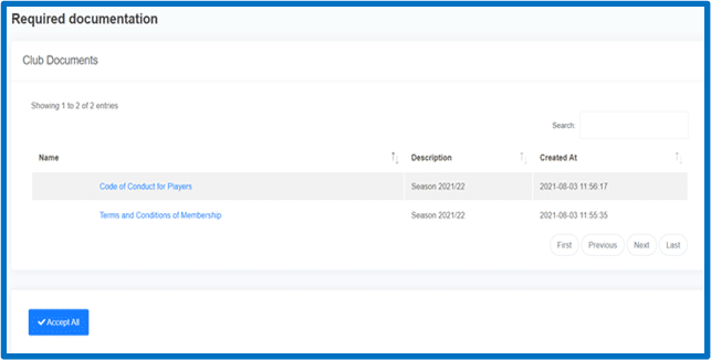 NB: This will capture a time stamped record for both you and the club showing the acceptance of the documents.