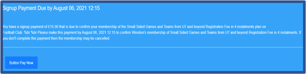 Your club may require a Sign Up Payment or Registration Payment – you will be notified if this has not been paid on your main TeamFeePay Screen – simply contact your Club Administrator if you have any queries regarding this