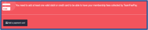 If you see the error message below on your account it is notifying you that your current payment card is invalid. This could be for a variety of reasons including expiry date. To update simply click on the button “Add Payment Card” to remedy
