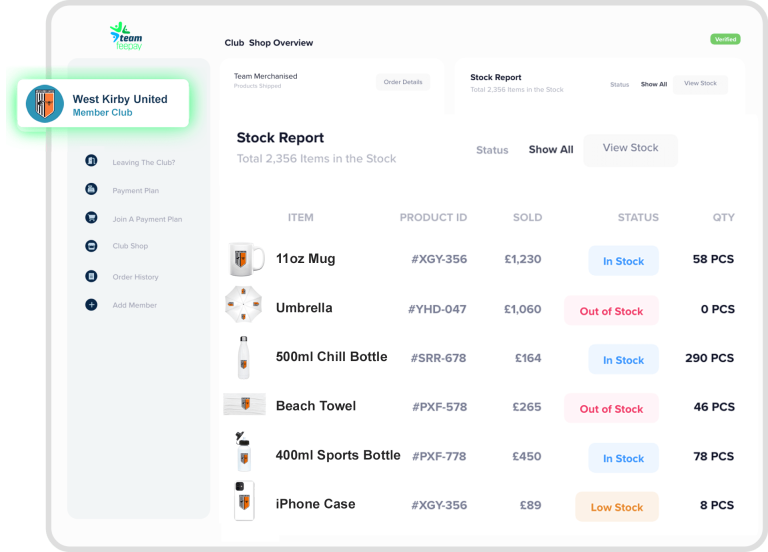 Customise your club shop to advertise and sell team wear, merchandise and tickets. Promote items easily to members and your wider community. No need to hold stock on optional items.